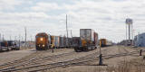 | Waiting for evening departure of train 622 as freight service 1801 waits to