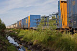 summer. The separate freight trains has carried double stacked containers, fuel