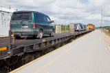 because of the amount of switching it involves) includes chain cars (flatcars) for light vehicles, baggage